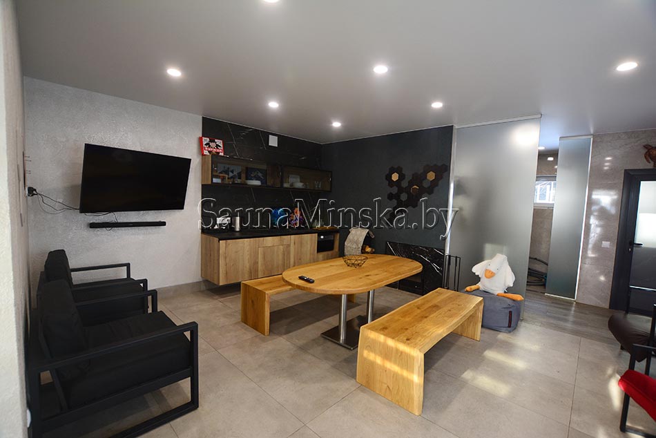 Любители русской парной могут посетить баню на дровах, где есть отдельная зона отдыха, кухня с бытовой техникой, аудио-видео аппаратура, караоке, настольные игры.