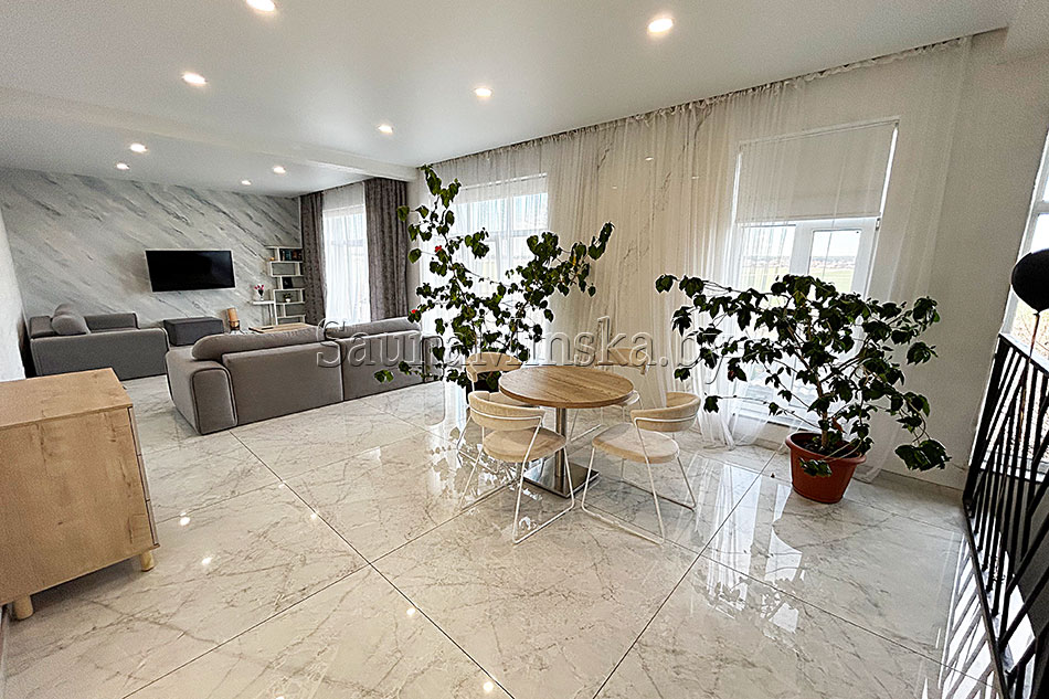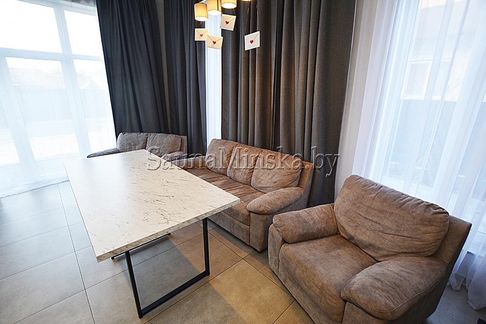 Коттедж с баней «Аполлон» - это современный комплекс, где все выполнено в светлых тонах, что придает легкость и уют пространству. Каждая деталь продумана, чтобы вы хорошо, комфортно и с пользой провели у нас время.