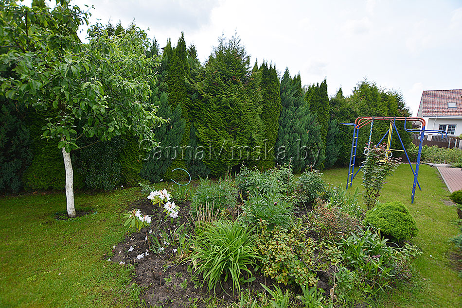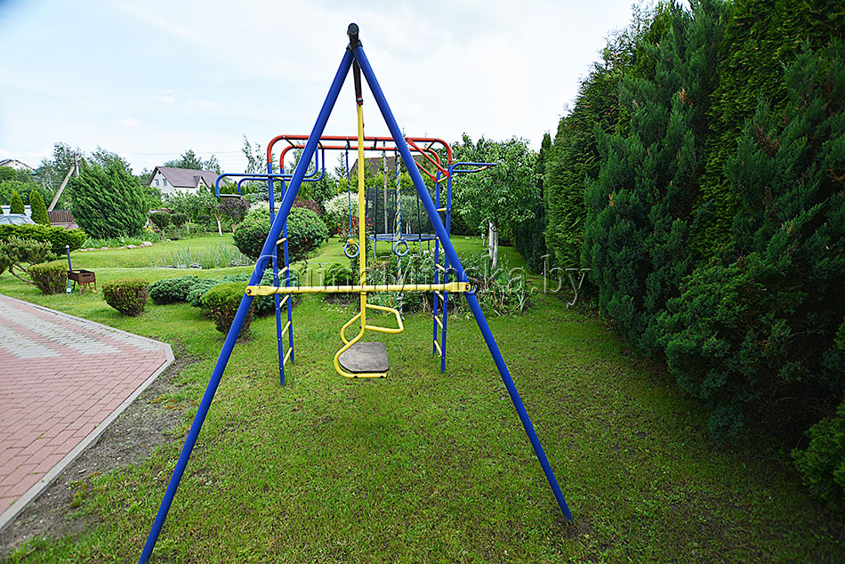 - Для детей оборудована детская площадка. Батут, качели.