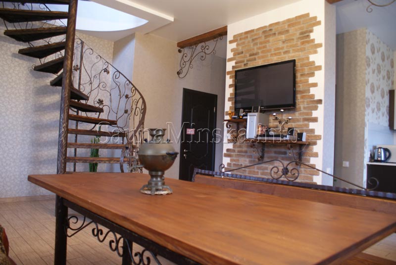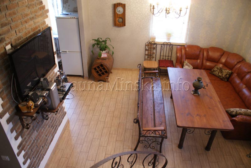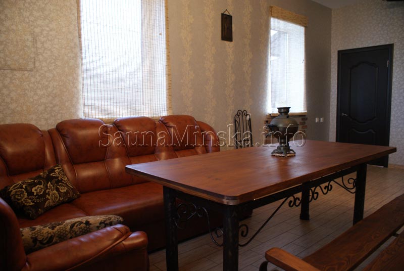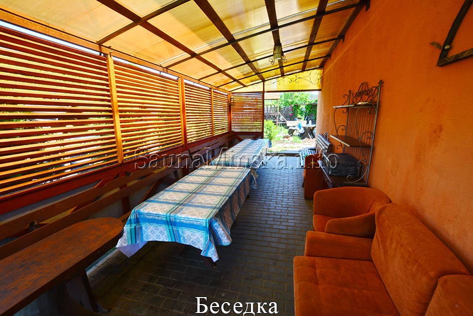 Дом с баней «На Садовом» представляет собой уютный коттедж со всеми удобствами, расположенный в поселке Ратомка, что всего в четырех километрах от Минска. Удобное расположение, огороженная забором территория, парковочные места. Дом с баней «На Садовом» - это место, где можно встретиться с друзьями, организовать корпоратив, отметить любые мероприятия. На первом этаже наших гостей непременно порадует просторная парная на дровах. Тут же расположен уютный банкетный зал с большим кожаным диваном, домашним кинотеатром. Есть кухня со всей необходимой бытовой техникой, просторная спальня. Поднявшись на второй этаж к вашим услугам две комфортабельные спальни для ночлега, санузел с ванной комнатой. В любое время года вы можете накрыть стол в крытой беседке с мангалом, которая расположена на территории коттеджа. Возможна аренда первого этажа с русской парной на часы, а также всего дома со спальными местами на сутки и более. Дом с баней «На Садовом» в Ратомке предлагает своим гостям отдых за чертой города.