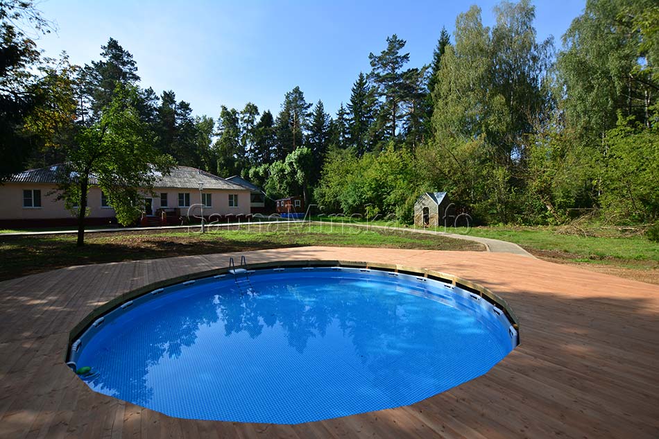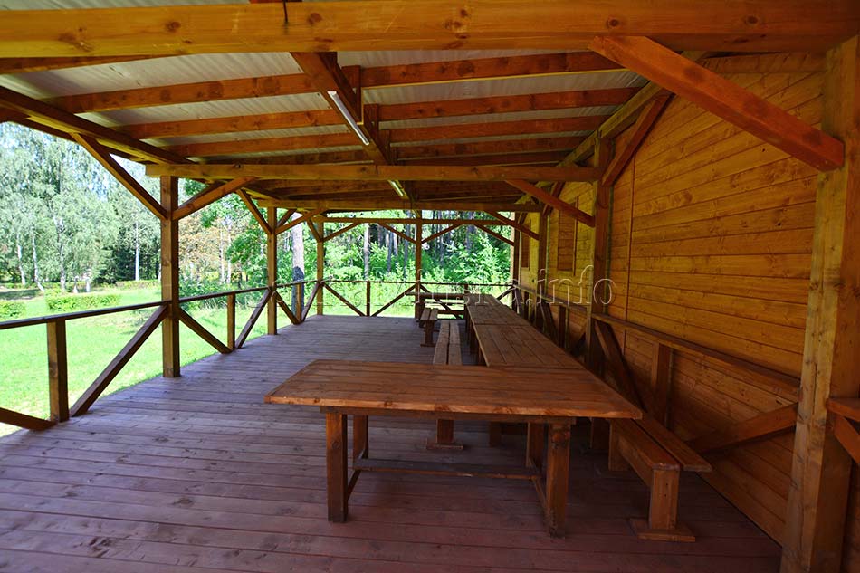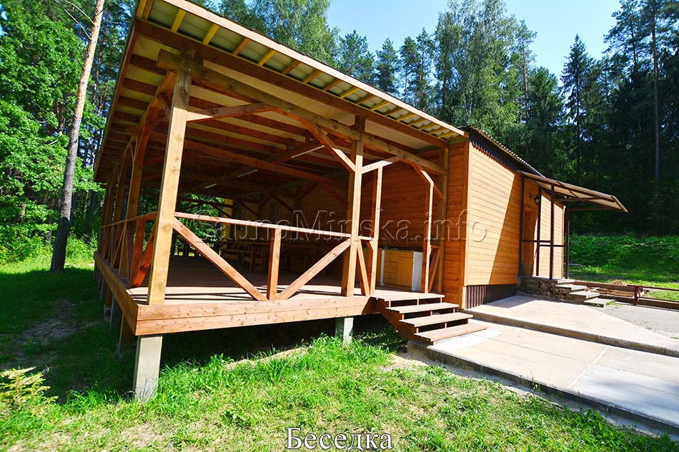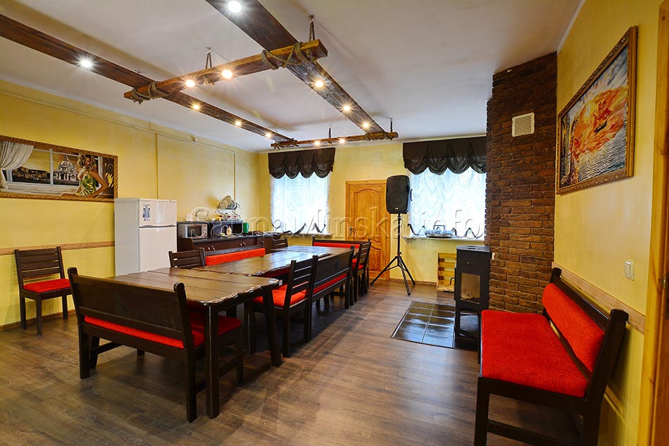 Банкетный зал, комнаты отдыха, детская площадка, мангал, беседки.