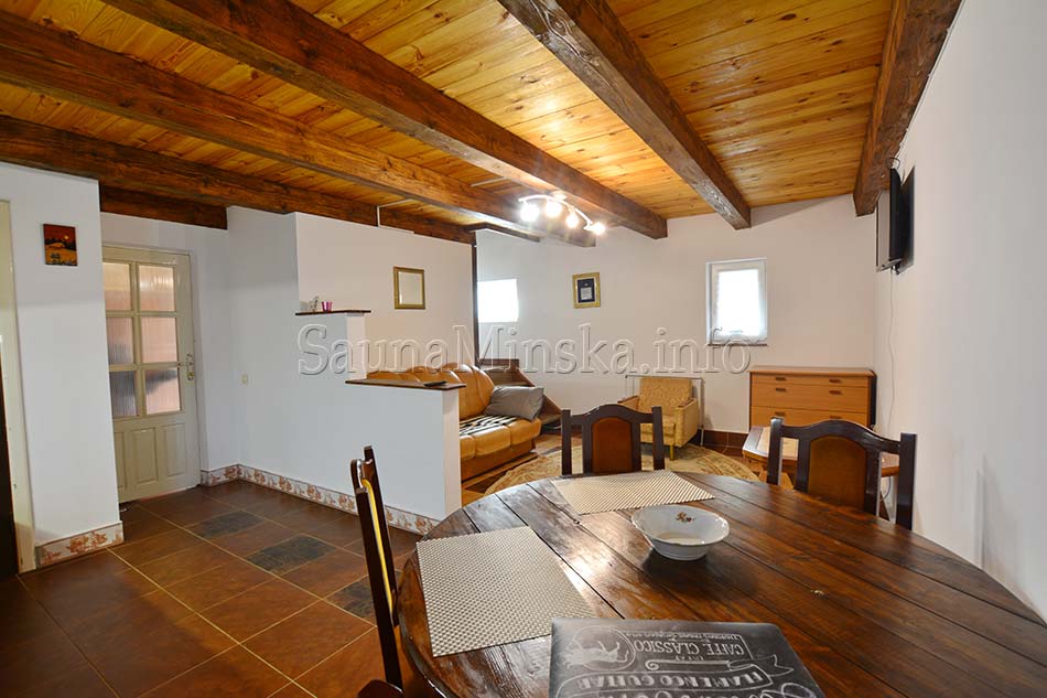 Коттедж с баней House Lesnoy (Хаус Лесной) – это современный дом, в котором есть все условия не только для банного отдыха, но и для проживания на длительное время. Для отдыха наших гостей имеется 5 комнат отдыха со спальными местами, где может разместиться до двадцати человек. Есть кухня с бытовой техникой, посудой. Любители попариться могут посетить русскую баню на дровах расположенную в усадьбе. В коттедже House Lesnoy работает Wi-Fi интернет, есть спутниковое ТВ. На улице на закрытой территории можно приготовить шашлык. Заведение расположено вблизи города Минска в 10-ти километрах от кольцевой автодороги в деревне Чертяж. К нам будет вам удобно добраться как на своем авто, так и на маршрутном такси.
