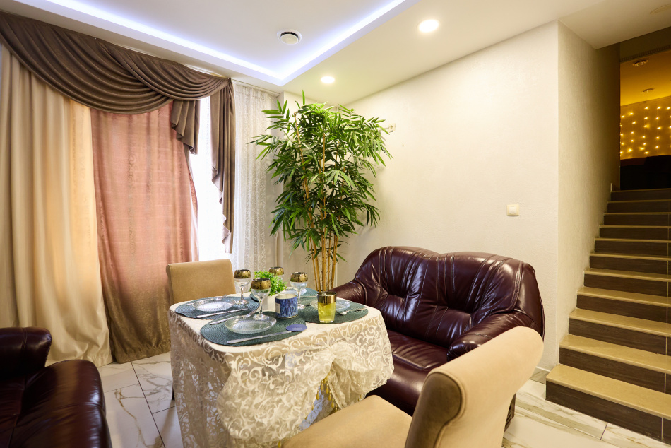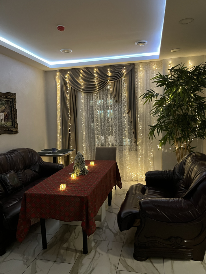 Зона отдыха: комната отдыха до 10 человек, приятная атмосфера, свечи, кожаная мебель, посуда, подвесная купель, джакузи, телевизор , ютуб , караоке микрофон, массажный стол, раздевалка