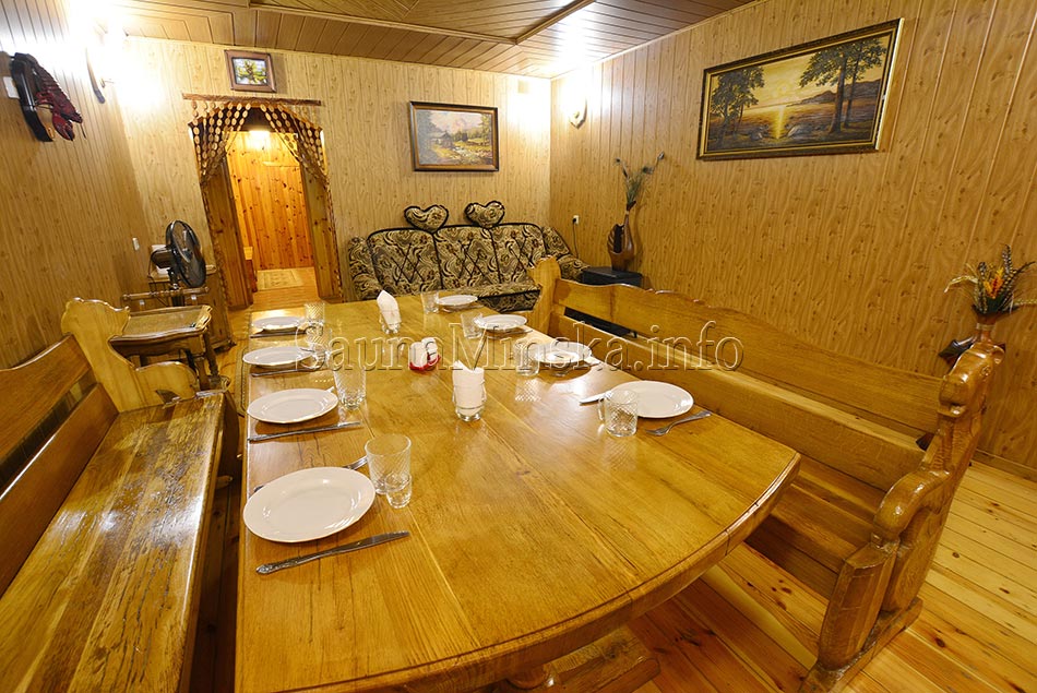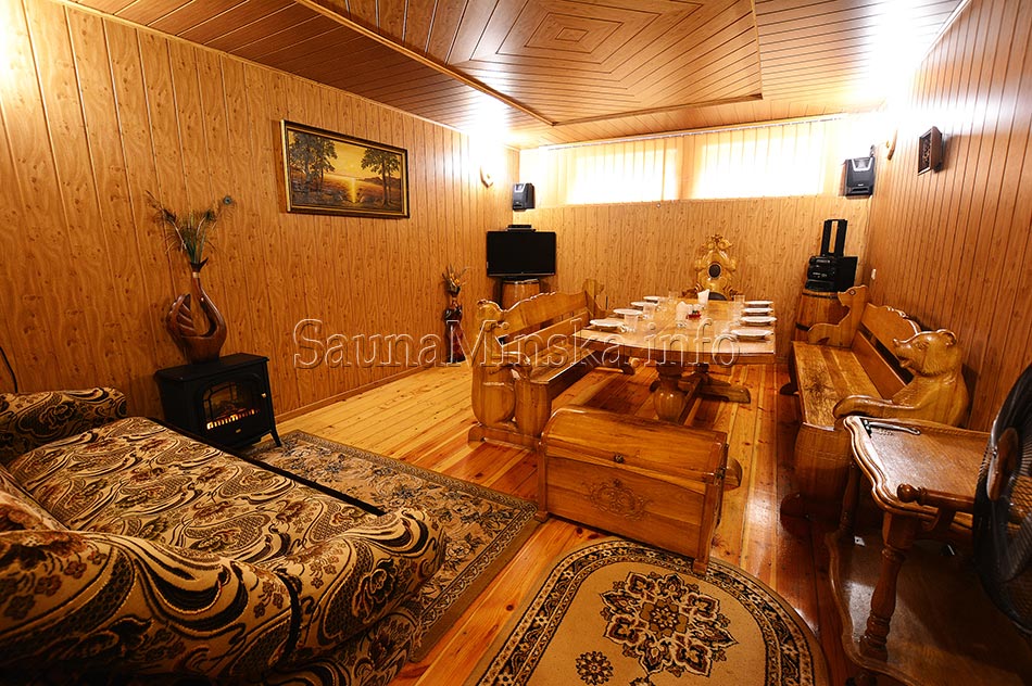 Продолжить отдых можно в по-домашнему уютной комнате для банкетов, где можно организовать любое мероприятие, накрыть праздничный стол. Разнообразить отдых можно игрой в русский бильярд. Для тех, кто захочет отдохнуть после банных процедур или остановиться на сутки и более предложат пять комфортных спальных комнат. Каждая комната отдыха оборудована ТВ, мягкой мебелью.