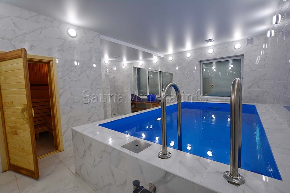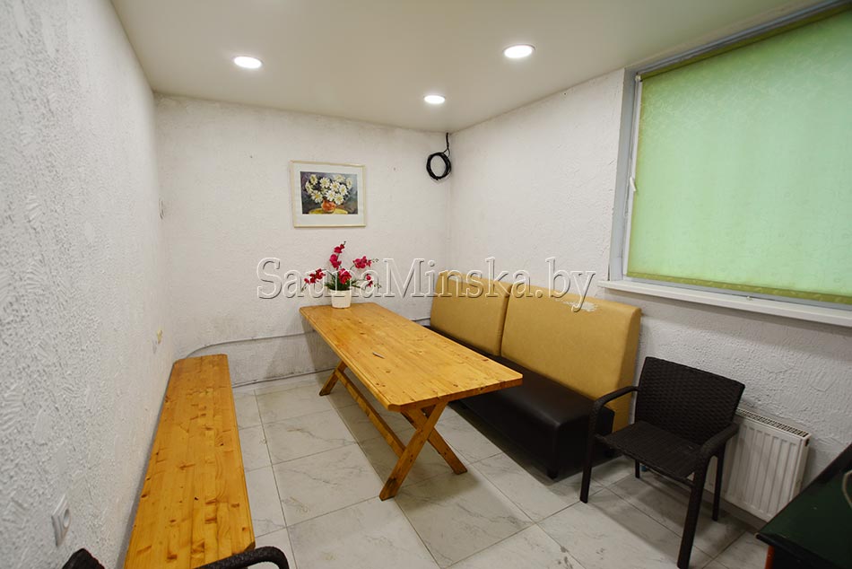 Зона отдыха: комната отдыха с кожаным диваном, при необходимости может трансформироваться в большую кровать (для самых уставших), чайник, журнальный столик, микроволновка, мойка; отдельная банкетная комната отдыха с большим деревянным столом, ЖКИ, блютуз-колонкой и светомузыкой; комната отдыха с бильярдным столом (американка), блютуз-колонками и светомузыкой, плетёный диванчик, фен и зеркало во всю стену; раздевалка, мангал - ставим у входа в сауну по желанию отдыхающих; комната с бассейном, два душевых отделения, ШОК-ведро - для самых смелых