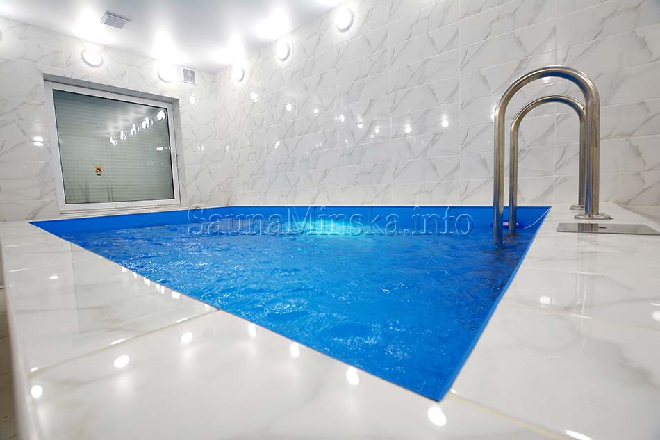 В большом, глубоком бассейне 4х2х1.5 метра. Для желающих установка «противоток» (гидропушка) создаст настоящее течения реки и отличный массаж всего тела. Постоянная фильтрация осуществляется через фильтры грубой очистки и кварцевый песок.