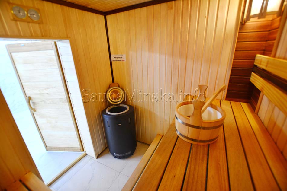 Парные: русская, финская (печь-каменка с разогревом камней до 250-300, возможность сухого и влажного пара), температура в сауне 90-100гр, используем только бамбуковые веники, веники с листьями НЕ используем