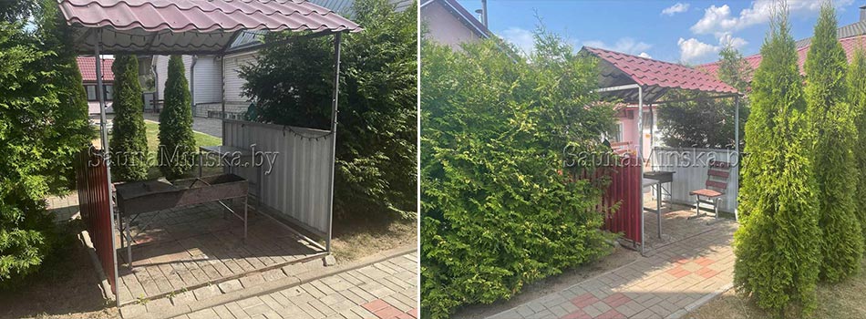 На улице оборудована зона отдыха с мангалом с видом на Минское море.