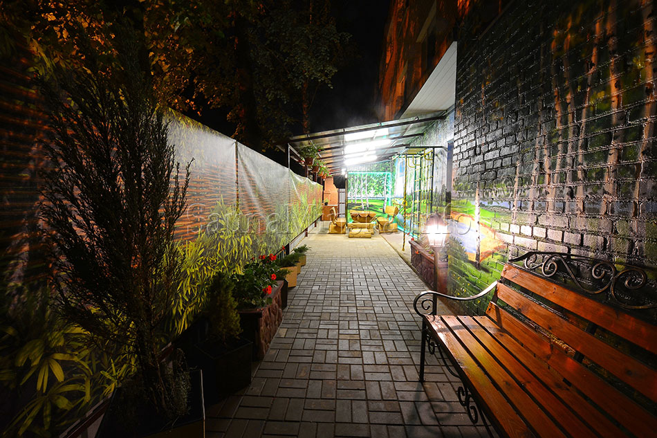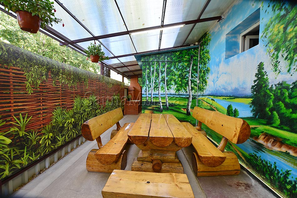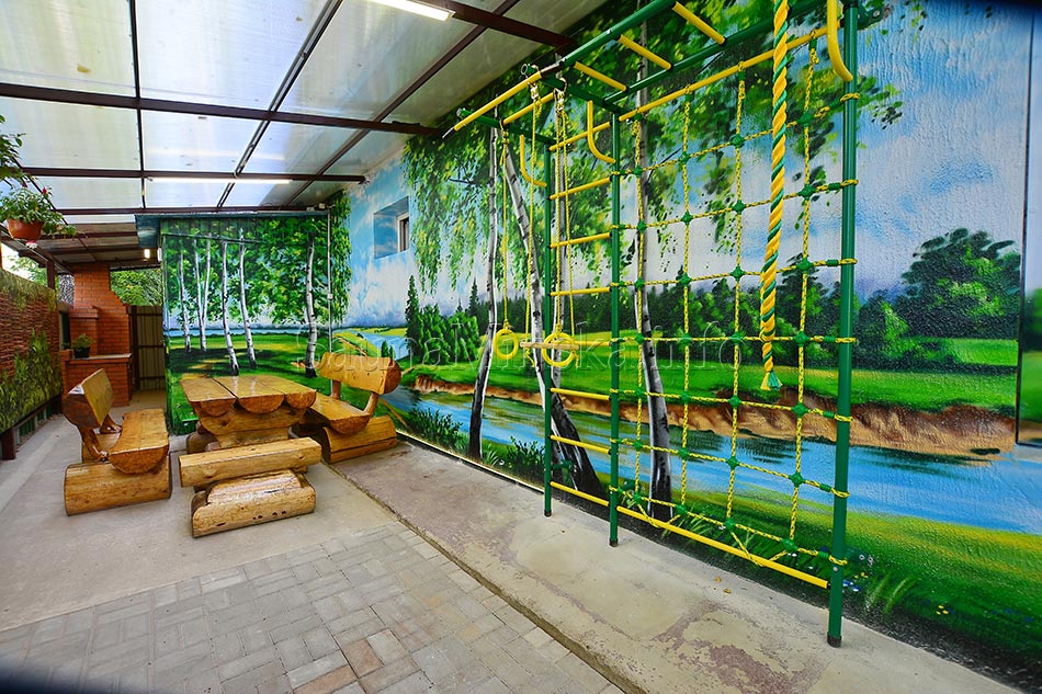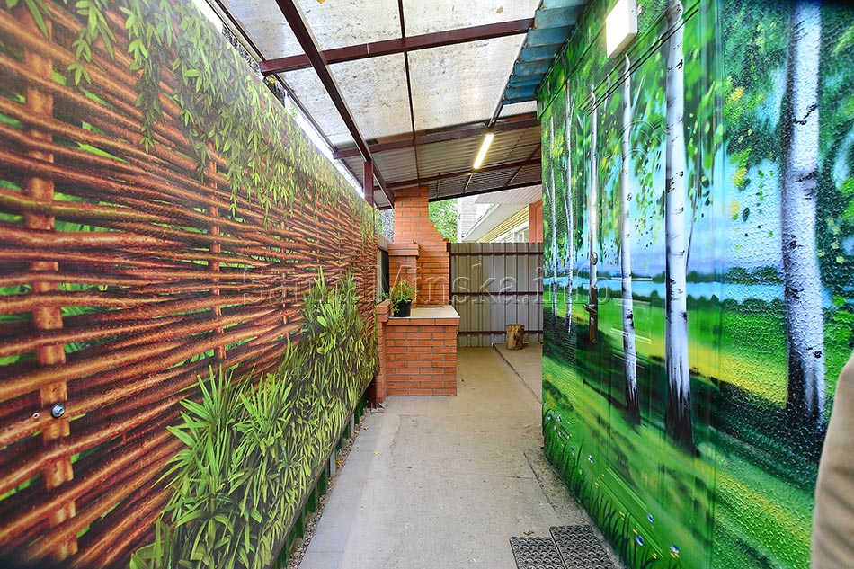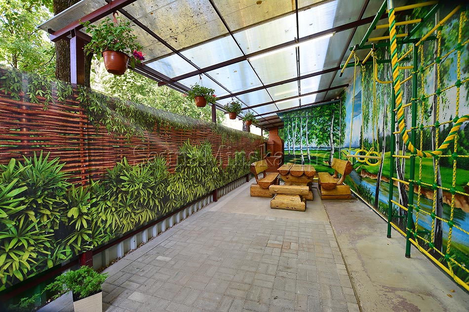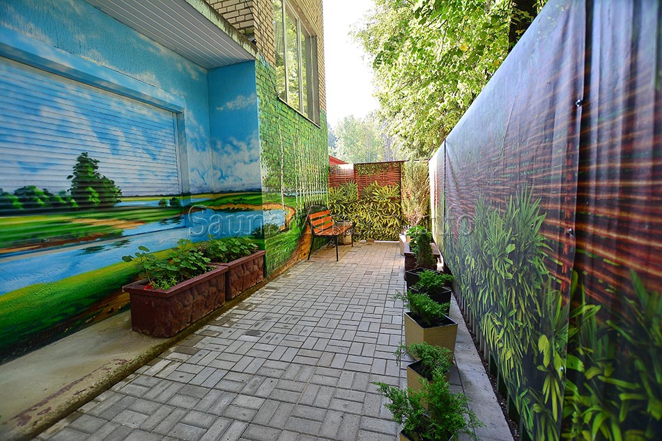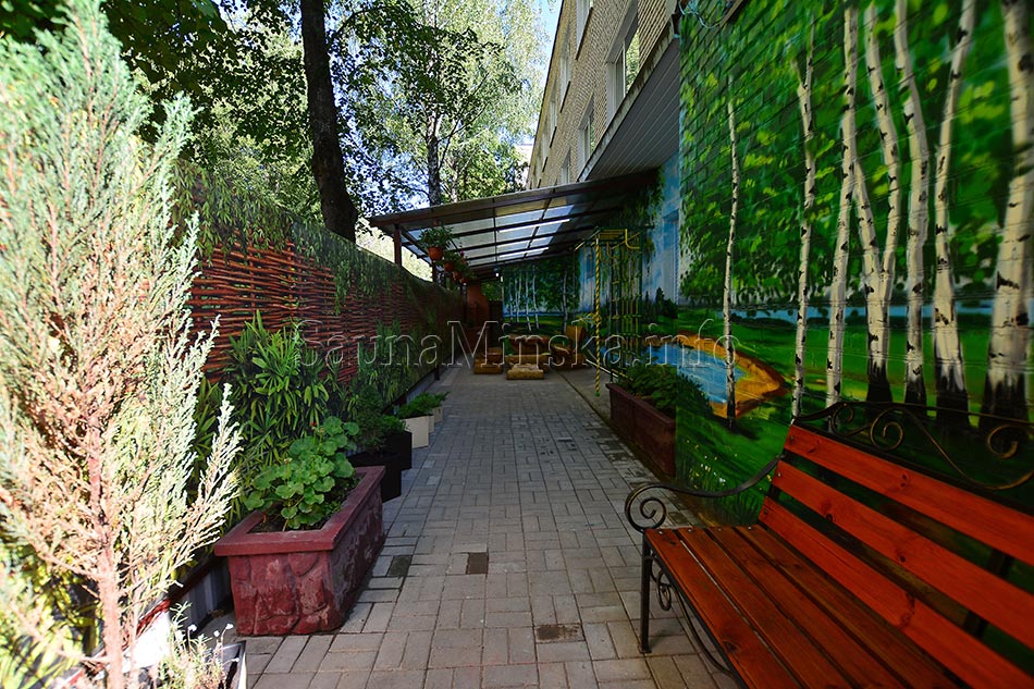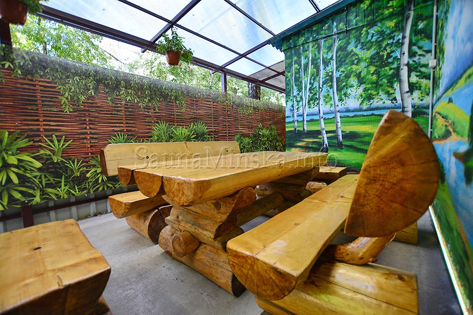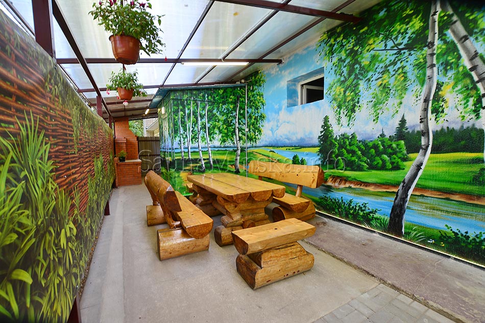 Здесь есть своя закрытая территория, а также все необходимое для приготовления шашлыка. Можно накрыть праздничный стол как внутри сауны, так и на улице возле барбекю.