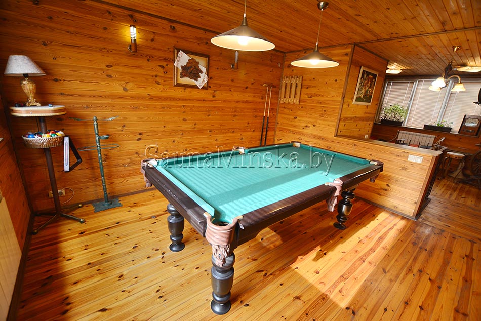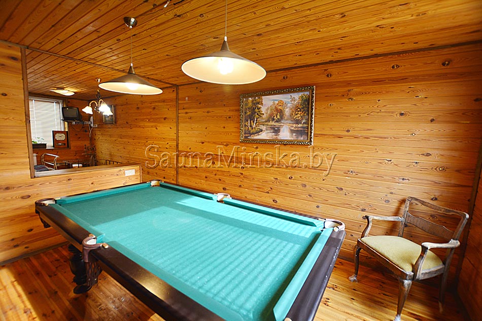 Отдельно есть зона отдыха с бильярдным столом, где можно разнообразить банный отдых.